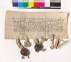 Henrik Jensson, ridder, og Erik Amundsson, lagmann i Trondheim, kunngjør at Matthias Biskop vedgikk å ha mottatt fra erkebiskop Olav i Trondheim de 50 lette gylden som gjensto av betalingen for en gård. Beseglet av utferderne.