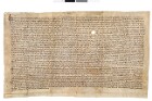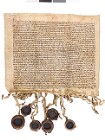 Samningur milli Odds Bjarnarsonar og Bjarnar Jónssonar. Bréfið er óheilt og samanstendur af þremur ræmum sem notaðar hafa verið sem innsiglisþvengir.