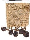 Sáttarbréf þeirra Gríms bónda Pálssonar og Þorleifs sonar hans af einni hálfu og af annari Vigfúsar lögmanns Erlendssonar og Hólmfríðar systur hans um allan hugmóð, heimsóknir, fjárupptektir og „sér í lagi um réttarbót Hákonar kongs, sem þeim hafði mest á millum borið“ (Nr. ,147)