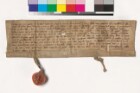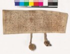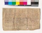 Vitnebrev fra Hallvard [Torfinnsson] gamle, hans sønn Torfinn, Torgaut på Asper, Reidulv [Amundsson?] i Skotbu og hans bror Torvard, og Lodin Reidarsson: De var samme dag på Vål på Follo, da Gudmund på Børsum overdrog til Sigurd Amundsson, ombudsmann for herr Pål Bårdsson kansler, 2 1/2 øb i Gubbegården i Børsum, med tilhørende skog. Gudmunds kone Sigrid skal ikke reise krav på jorden.