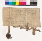 - Salgsbrev fra Arne Aslaksson, kansler og prost ved Mariakirken i Oslo, og kapitlet samme sted: Kannik ved samme kirke, sira Magnus Siggeson, har solgt 5 øb i Kuænnini i Grue sogn i Solør, som tilhørte Mariakirken, til Kjetil Tordsson, på kirkens vegne, og med kapitlets råd og samtykke. Sira Magnus har fått full betaling - 20 mark i gjengs mynt. Beseglet av utstederne og sira Magnus.