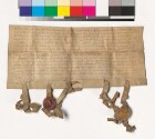 Johannes de Serone og Bernardus de Ortolis, pavelige sendemenn utsteder og besegler transkript: