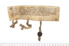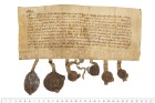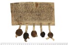 1) Guðmundur Skúlason prestur selur Ólafi Rögnvaldssyni Hólabiskupi og heilagri Hólakirkju jörðina Býjasker á Rosmhvalanesi fyrir fjóra tugi hundraða í lausafé. 22. ágúst 1488. 2) Transskriftarbréf fjögurra manna. 6. ágúst 1489.