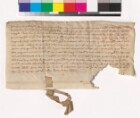 Vitnebrev fra Hallvard [Torfinnsson] gamle, hans sønn Torfinn, Torgaut på Asper, Reidulv [Amundsson?] i Skotbu og hans bror Torvard, og Lodin Reidarsson: De var samme dag på Vål på Follo, da Gudmund på Børsum overdrog til Sigurd Amundsson, ombudsmann for herr Pål Bårdsson kansler, 2 1/2 øb i Gubbegården i Børsum, med tilhørende skog. Gudmunds kone Sigrid skal ikke reise krav på jorden.