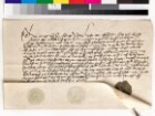 Abbed Niels i Esrum bemyndiger munken Jens til at skøde Konrad Franz, borger i Roskilde, klostrets ejendom i Snostrup.