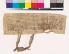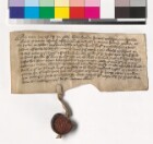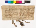 Vitnebrev om salg fra Sigurd Bårdsson, lagmann i Ryfylke, Andres prest på Fister, Ivar på Åse og Orm graddal: De var i Kors-stuken i Svithunskirken i Stavanger, da arvingene etter sira Narve på Øyestad vedgikk at de hadde solgt til biskop Eirik i Stavanger alt det faste og løse gods som hadde falt på dem, med unntak av gangklær, sengeklær, kister, bøker og lerret som var på Øyestad, for 16 mmb i Vestreim og 4 mmb i Hagha i Reinli [sogn]. Beseglet av utstederen.