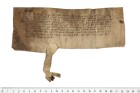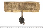 Þorkell Blængsson handfestir Einari ábóta á Munkaþverá vitnisburð um landamerki Stóra-Hamars í Eyjafirði, sem bréfið inniheldur.
