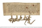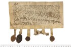 Bréf þriggja presta um það, að séra Þorkell Guðbjartsson fékk Jóni Vilhjálmssyni Craxton Hólabiskupi í umboði hústrú Margrétar Bjarnadóttur jörðina Hóla í Laxárdal, sem hún gaf í testamentum Hrafns Guðmundssonar bónda síns, og lofaði biskup að láta segja 30 sálumessur fyrir sál Hrafns og kvittaði sál hans og líkama á guðs vegna, en ekki erfingja Hrafns fyrir brotum Hrafns við heilaga kirkju.