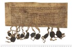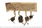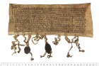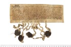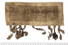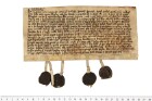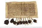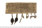 Bréf þriggja presta um það, að séra Þorkell Guðbjartsson fékk Jóni Vilhjálmssyni Craxton Hólabiskupi í umboði hústrú Margrétar Bjarnadóttur jörðina Hóla í Laxárdal, sem hún gaf í testamentum Hrafns Guðmundssonar bónda síns, og lofaði biskup að láta segja 30 sálumessur fyrir sál Hrafns og kvittaði sál hans og líkama á guðs vegna, en ekki erfingja Hrafns fyrir brotum Hrafns við heilaga kirkju.