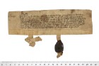 Þorkell Blængsson handfestir Einari ábóta á Munkaþverá vitnisburð um landamerki Stóra-Hamars í Eyjafirði, sem bréfið inniheldur.